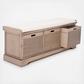 This Landers Cushion Storage Bench performs double duty as a stylish storage solution and perfect seating in an entryway or mud room. Landers gives your décor a touch of contemporary farmhouse charm with its beautiful finish and three spacious basket drawers.