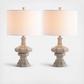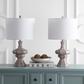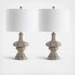 Inspired by collectibles in a French chateau, this classic table lamp is an investment in luxury. Designed with finely sculpted curves that are illuminated with its dramatic grey wash finish, its finial and 100% cotton off white shade blend with any decor.