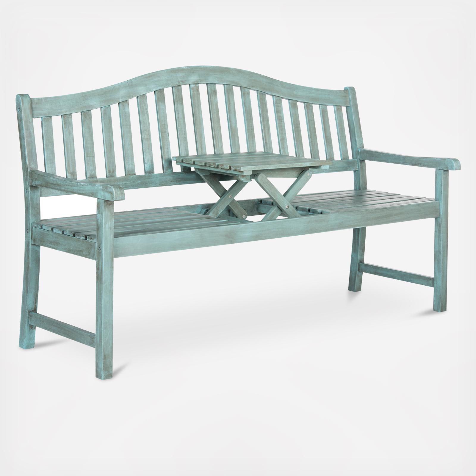 Stop and smell the roses. Crafted with acacia wood and galvanized steel, the Misha Bench's soft, Asian-inspired style is a charming outdoor companion not just a fair-weather friend.