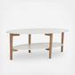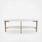 Designed to combine style and substance, this contemporary oval coffee table offers two layers of haute style—and storage. Inspired by the legendary designs of a Finnish architect, its polished white and natural wood finish instantly updates any interior.