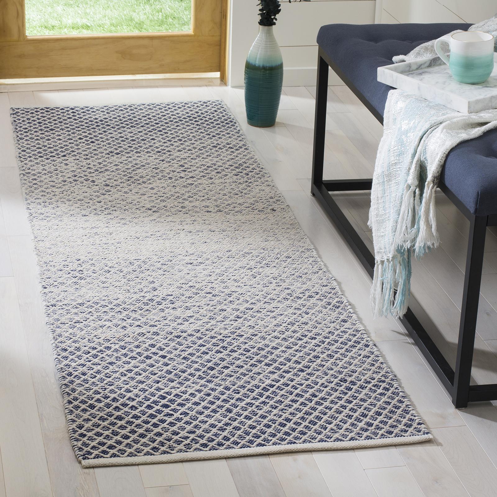 The Montauk Rug Collection captures the essence of casual designer style. The breezy, coastal character of these flat weave rugs complements decor from contemporary to country to city loft. Montauk area rugs are made using 100% pure, soft cotton for remarkable clarity of color, and are hand woven to create classic Ikat tie-dye effects.