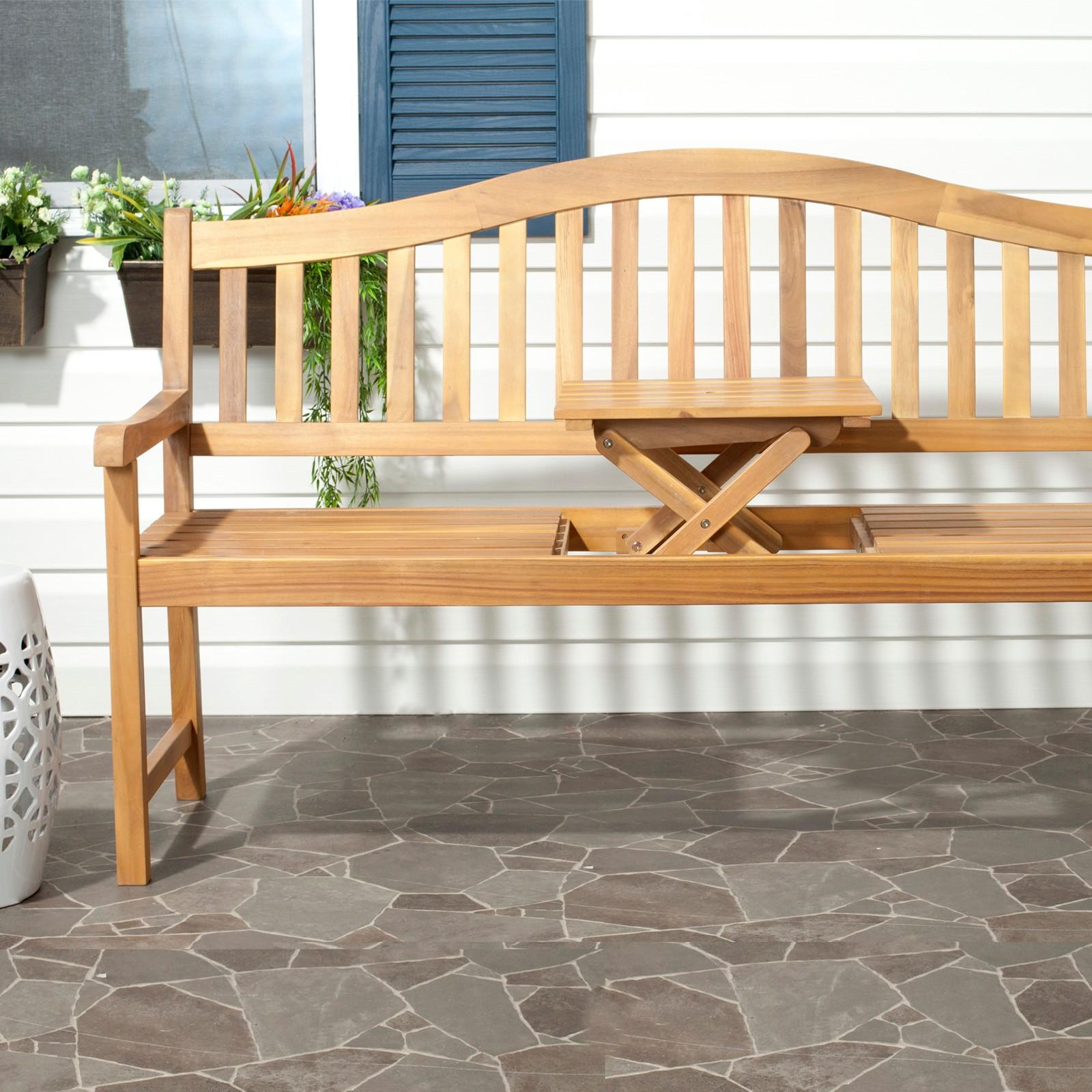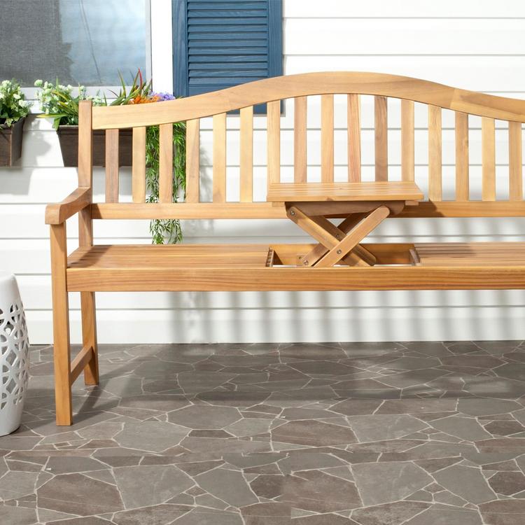 Stop and smell the roses. Crafted with warm brown acacia wood and galvanized steel, this benchs soft, Asian-inspired style is a charming outdoor companionnot just a fair-weather friend.