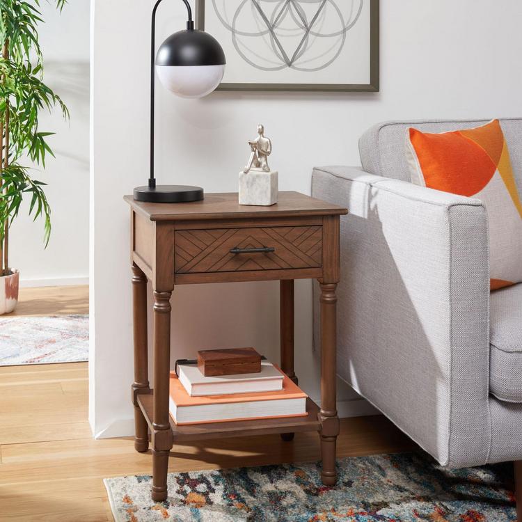 Understated yet sophisticated, this Peyton Accent Table is ideal for today’s classic contemporary decor. Peyton’s timeless turned legs and carved wooden accents are given a modern touch with the oversized herringbone pattern on its drawer, while a finish is perfect for any room’s color scheme.