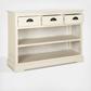 Form meets function in this classic Prudence Bookshelf. Prudence boasts three drawers with half moon pulls and two open shelves that lend a touch of timeless charm to its clean finish. A must have storage solution in small space living areas.