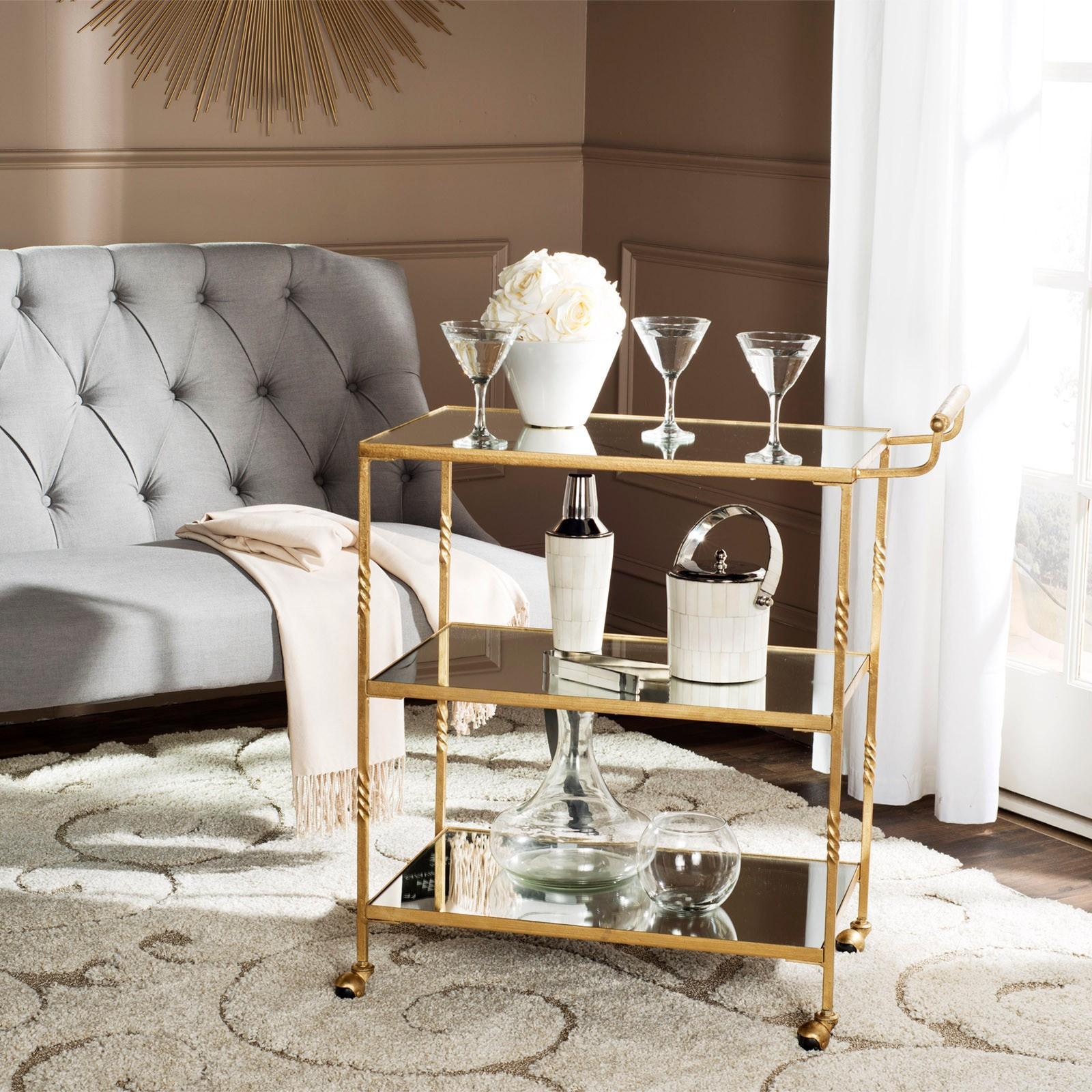 Serve drinks in style! Create a restaurant experience when entertaining at home with this bar cart; with mirrored glass shelves and chic steering handles, this elegant trolley on casters is crafted of sturdy iron with a lustrous finish.