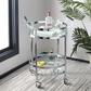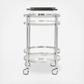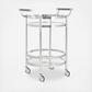 Designed with sleek, stylish curves, this contemporary 2-tier round bar cart ensures easy entertaining in any room. Its two glass layers and shimmering finish create a stunning showcase for glasses and barware. It’s a must-have for the modern host.