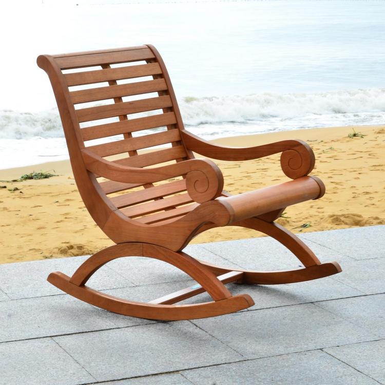 The porch rocker gets a glamour makeover in this outdoor rocking chair with transitional lines that update the profile of a British classic. Crafted of Eucalyptus wood, this piece is perfect reading, dozing or watching a sunset.