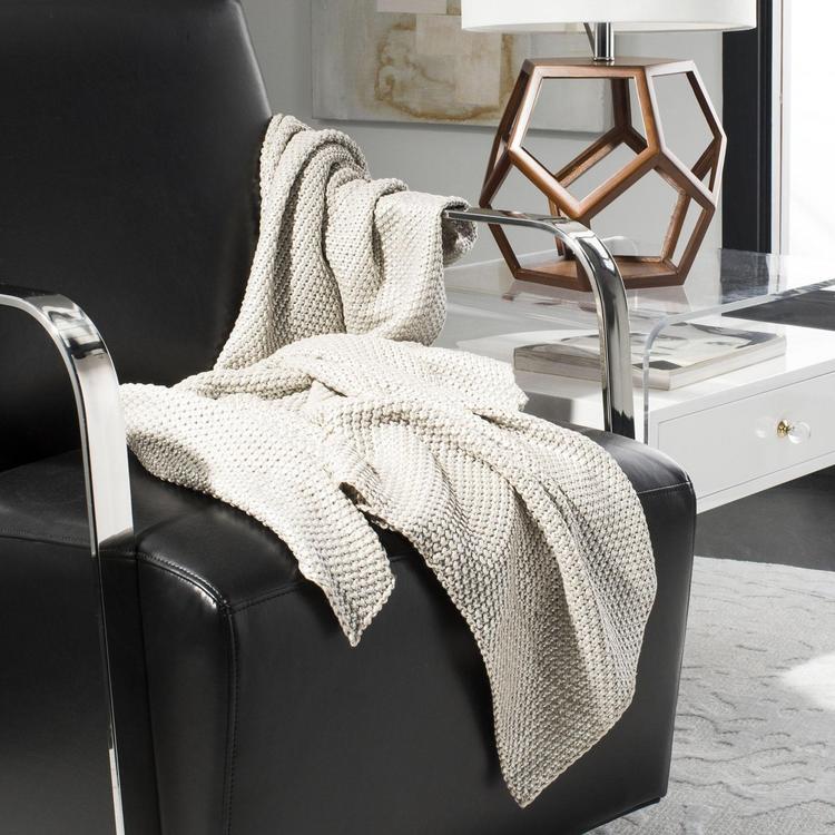 Classic knitting artistry is updated in the refined look and soft, smooth feel of Tickled Grey Knit Throw. One side of this versatile accent blanket features shimmering beige tones, while the other reveals softer hues made of pure cotton. A decor smart accessory to add subtle radiance and texture to any contemporary styled home decor.