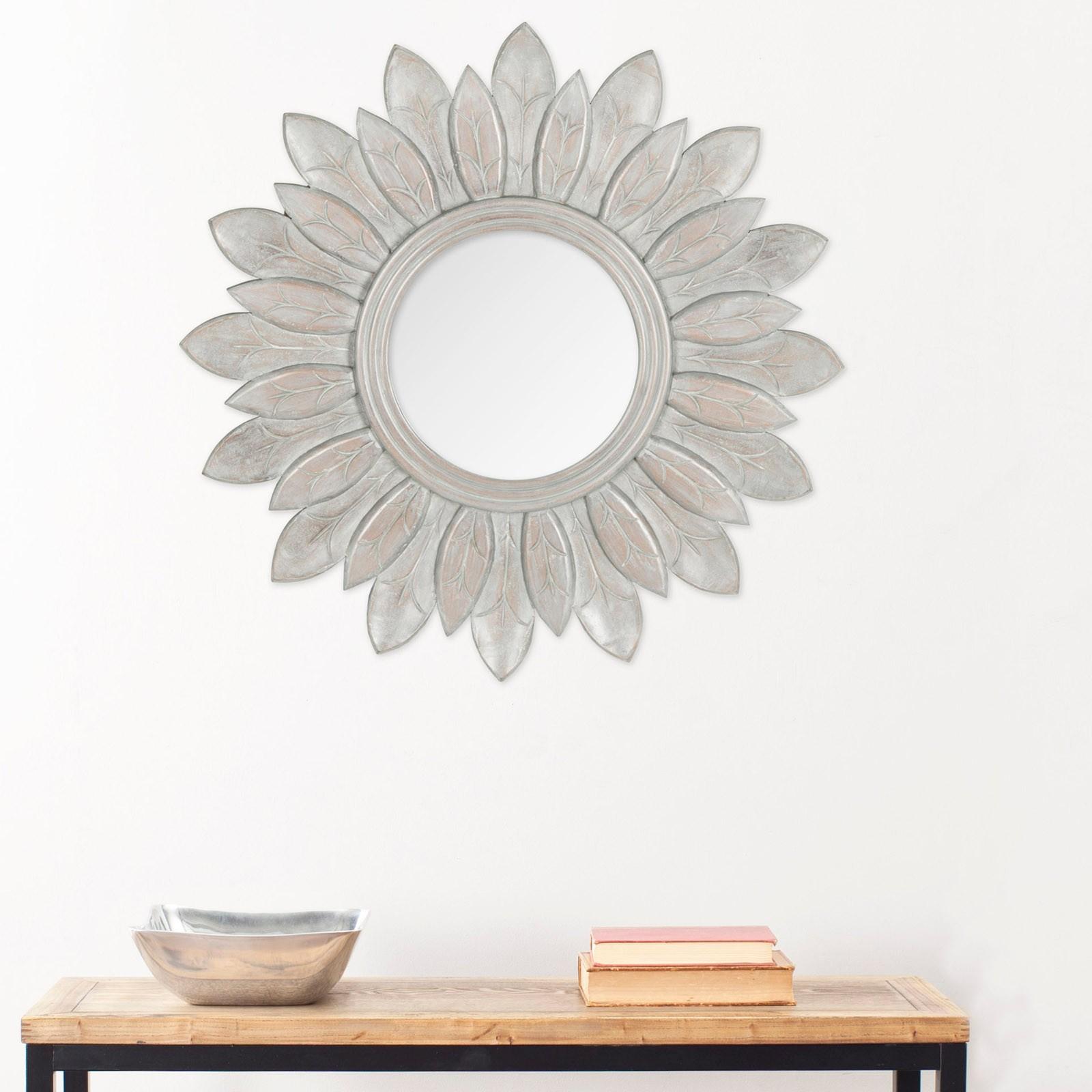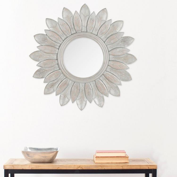 A nod to the dazzling royal court of Versailles, this mirror recalls the golden age of art during the reign of Louis XIV. Artfully carved to create a classic sunburst, this round mirror is finished in a soft shade of grey.Use this timeless work of art as a focal point in any room and with decorating styles from traditional to eclectic and transitional.