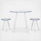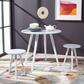 Perfect for cozy kitchens or small-space breakfast nooks, this Whitman Dining Set emanates modern farmhouse charm. The glossy grey tops of Whitman’s table and two stools provide tonal intrigue to its splayed white legs, seamlessly accenting any room’s color palette. Designers love its bistro-style look.