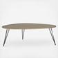 Give your living room a high end designer look with the dramatic elliptical shape of the Striking Coffee Table. Inspired by mid-century classics, this striking piece is crafted with three sets of hairpin legs.