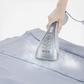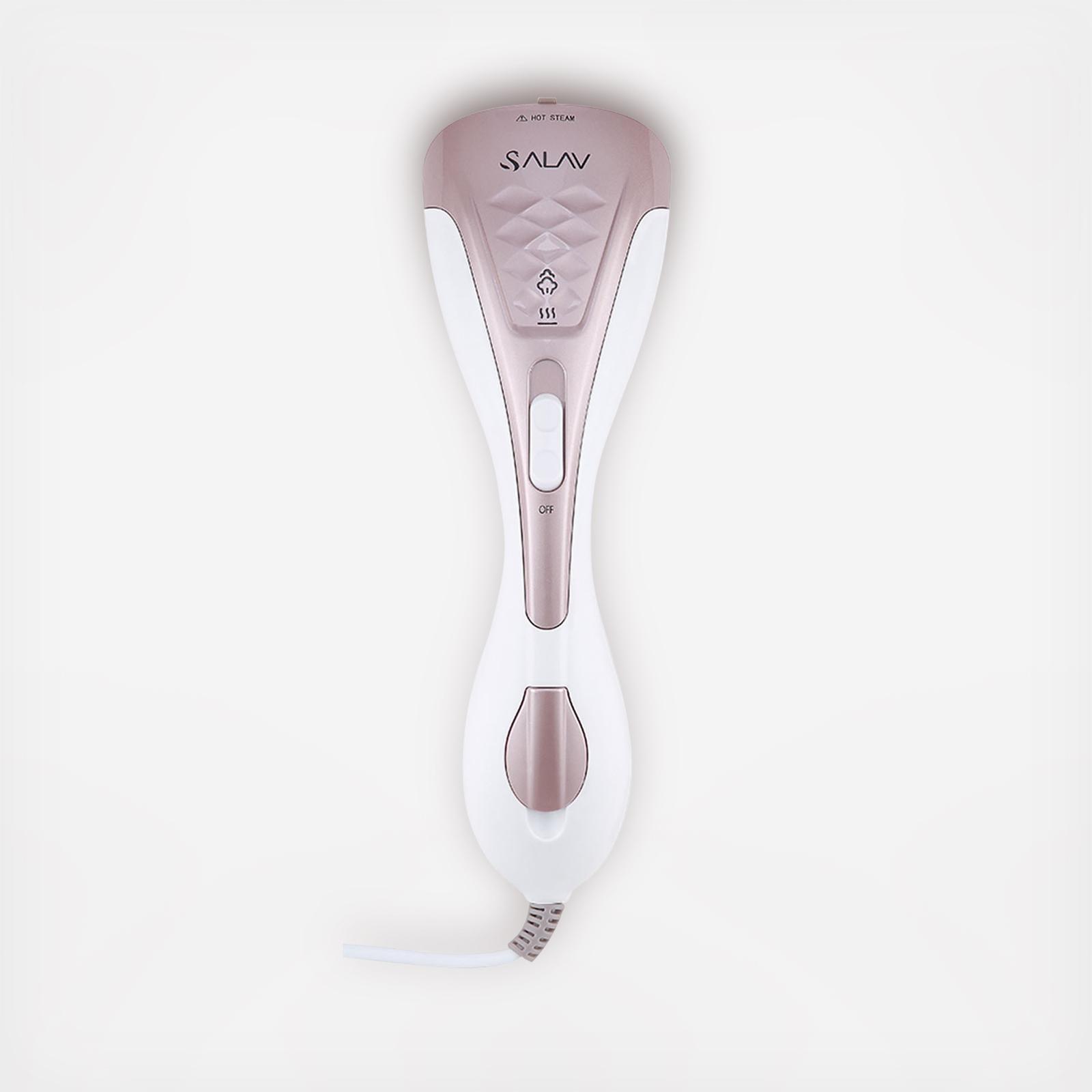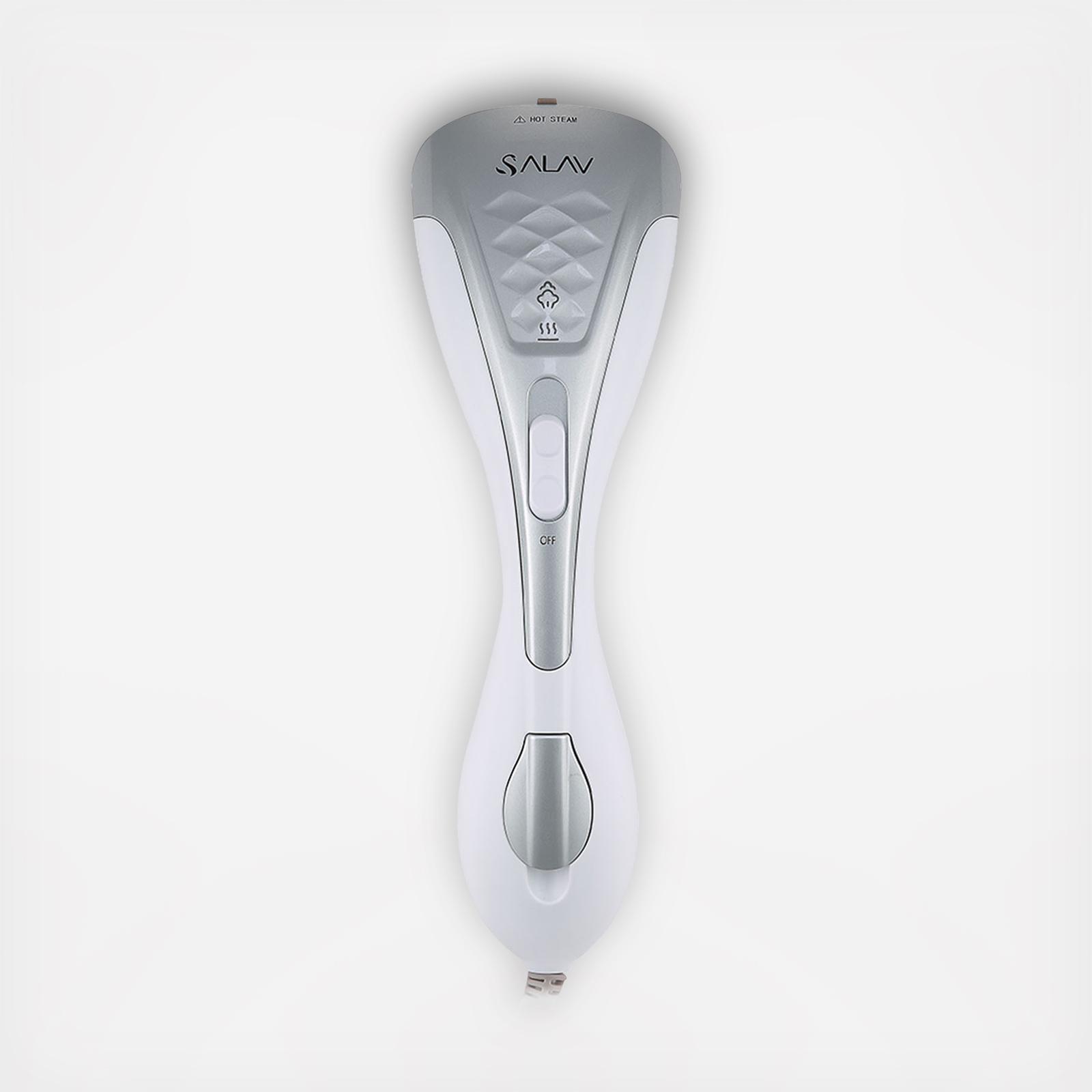 The Salav HS-100 Duo Press handheld steamer is a powerful 1150 watt garment steamer built with the latest heating technology that produces powerful, drip-free steam in a quick 50 seconds. Steam in all angles with no leakage or water spitting. The dual heating technology creates steam and heats the ceramic ironing plate to evenly distribute steam. Reaching temperatures of over 300 degrees Fahrenheit, the HS-100 will eliminate even the toughest wrinkles. The Ironing Mode produces dry ironing for pressing heavy duty fabrics, and the Steaming Mode releases continuous powerful steam to gently release wrinkles. Easy to fill and use, the HS-100 is compact, lightweight and portable - the perfect travel companion!