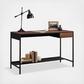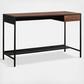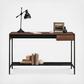 Jot down your thoughts or get started on your next big project all while adding a beautiful touch of style to your home with this writing desk with drawer from the Boulevard Cafe collection. This writing desk with storage features a spacious top surface that provides you with the ideal amount of room for all your desktop essentials like your laptop, a cup full of pens, your collection of notepads and your favorite coffee mug. There’s plenty of room for home decor items like an accent lamp and picture frames too. This writers desk features a small storage drawer that opens and closes on smooth metal runners for easy accessof items like paper clips, envelopes, and rubber bands. A lower shelf for additional storage of binders, organizing bins, and more gives you extra space without cluttering your surface area. This wood and metal desk looks great no matter where it stands—it is finished on all sides for versatile placement in your home. This desk for laptop adds a sleek workspace where you need it most.