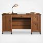Give your office a promotion with this computer desk from the Carson Forge collection. This home office desk has a spacious tabletop to provide you with room for all your office essentials – sticky notes, folders, a laptop, and more! This wood office desk includes two drawers with metal runners and safety stops—ideal for storing pens, extra paper, and your planner. The lower drawer on this computer desk with storage includes easy-glide full extension slides and holds letter or legal size hanging files. A storage area behind the door features an adjustable shelf for customizable storage as well as a dedicated space for a vertical CPU tower. Quick and easy assembly with a patented T-lock drawer system means your new home office desk will be ready to work in no time. A cord management system with a desk top grommet keeps your workspace tidy and clutter free.