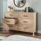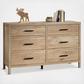 Are you seeking a bedroom dresser with a rustic vibe that is as stylish as the clothes inside of it? This 6-drawer dresser from the Pacific View collection has the great looks you want with the expansive storage that we know you need. This bedroom dresser features six large drawers that open and close on smooth metal runners for easy-access storage of items like denim jeans, blouses, and cozy sweaters. This dresser with drawers also features a spacious top surface that provides space to store home essentials like decorative plants, cologne bottles, a makeup bag, and framed photos of your family. Need storage in a guest room? This double dresser has a universal aesthetic to fit seamlessly into the second bedroom, hallway, or foyer for added storage where you need it most.