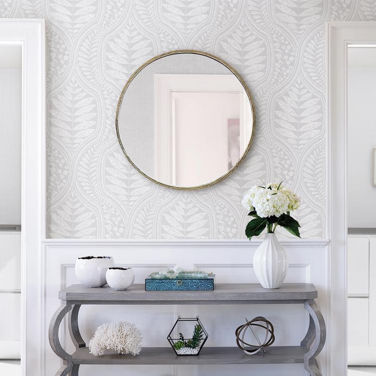 Contemporary with a hint of enchantment, this wallpaper features a gorgeous ogee design of leaves. Complete with a Scandinavian flair, this design adds a soothing ambiance to any home. Juno is an unpasted, non-woven wallpaper. Wallpaper comes on one roll that measures 20.5 inches wide by 33 feet long and covers about 56.375 square feet.