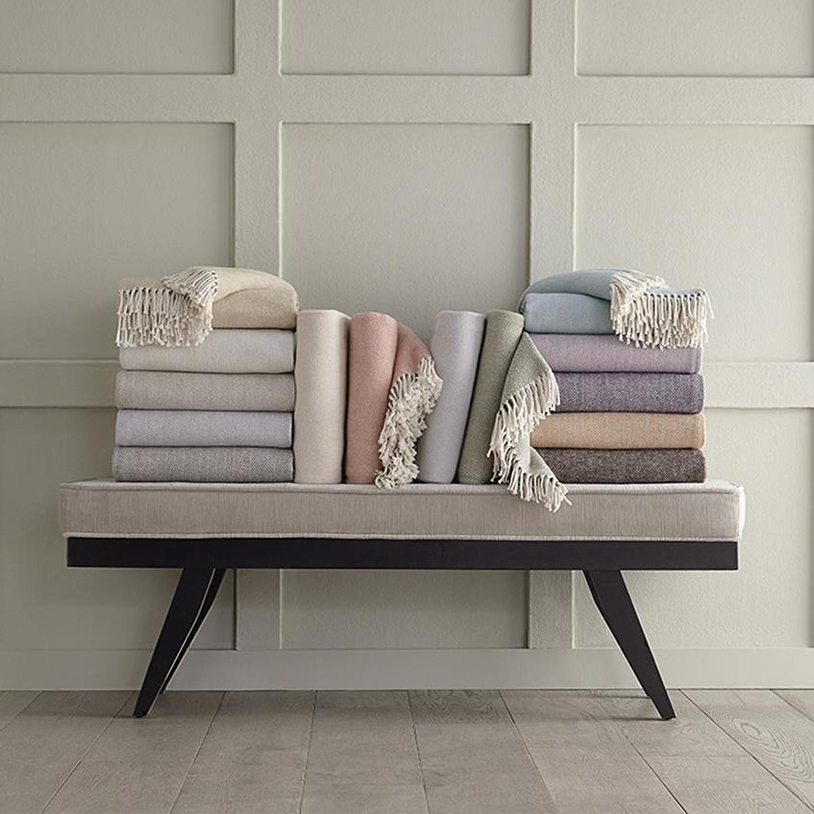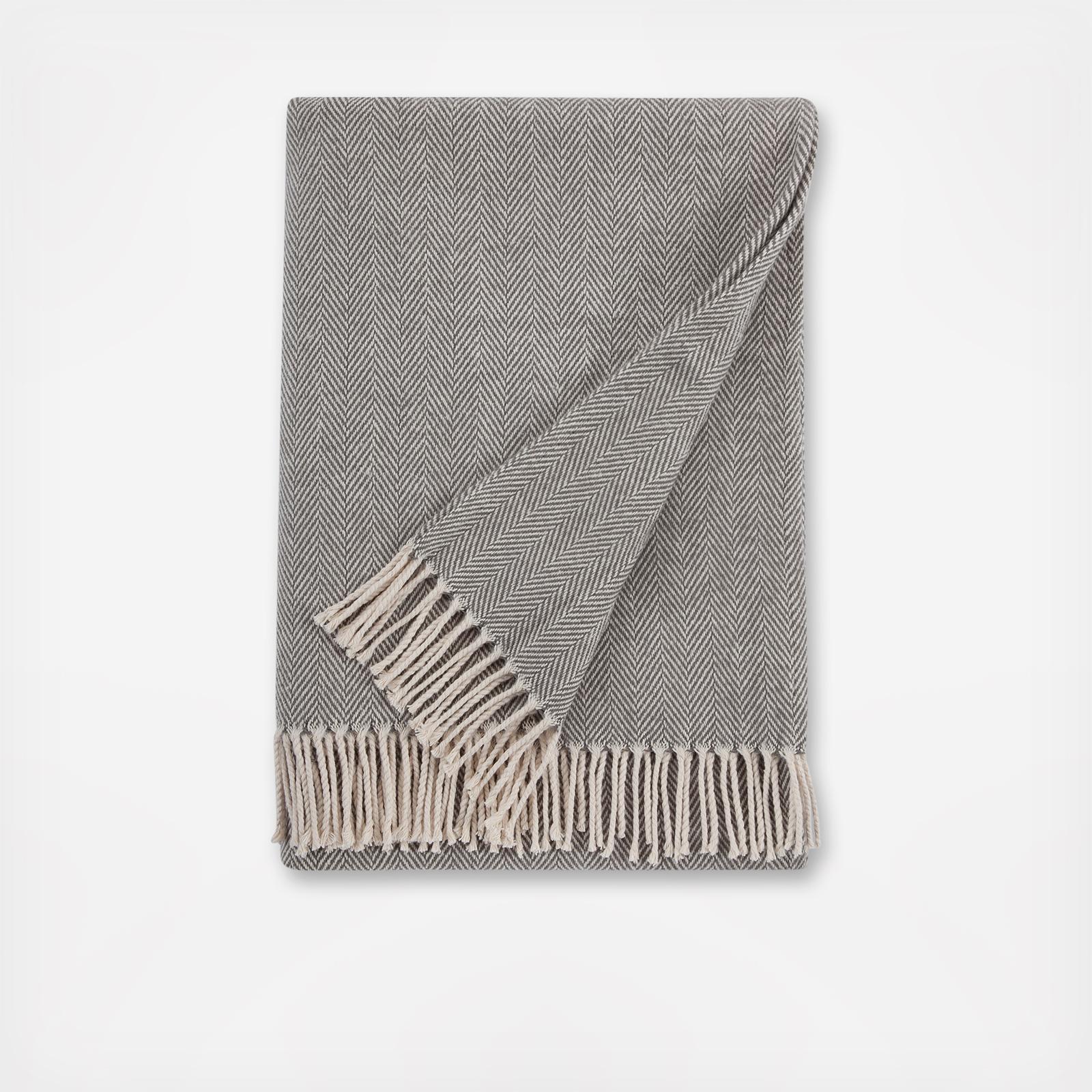 Cotton, when brushed, undergoes a transformation that gives it a plush, alluring texture this side of heaven. This throw blends soft color with white or natural in a herringbone weave and finishes it with a twisted, natural fringe.