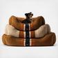 The Shinola Kuddle bed features a one-piece construction, overstuffed with recycled high-loft MemoryFiber polyester fill. The thick shearling Berber cover is removable and machine washable. Contrast cording accentuates the signature Shinola brand stripe. Each kuddler is finished with a Shinola label showcasing their distinctive lightning bolt. Designed and assembled in the USA with imported components.
