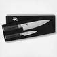 The Shun Classic 2-Piece Starter Set includes the two essential knives every kitchen needs. Classic Chef’s Knife, The all-purpose workhorse for slicing, dicing, and chopping. Classic 3.5" Paring Knife – Ideal for precision tasks like peeling, coring, and trimming. Presented in a refined box, this set is ideal for storage or gift-giving—an elegant introduction to Shun’s legendary craftsmanship.