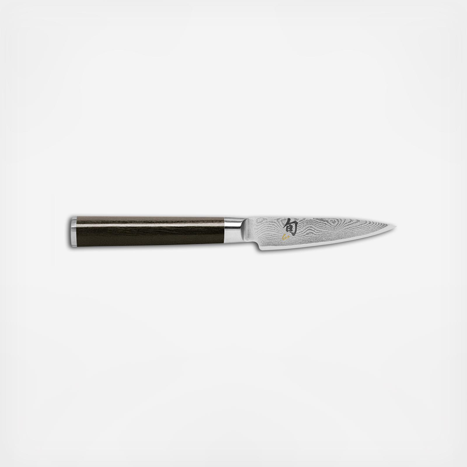 The Shun Classic 3.5-inch Paring Knife is the second of the most essential kitchen knives every cook should have on hand. After a chef's knife, you need a paring knife. It's perfect for any paring task, from hulling strawberries to peeling an apple. It also handles jobs such as cutting small foods, like garlic cloves or ginger, against a cutting board. The three-inch blade is the perfect length for most jobs and the new light blonde-colored handles offer beauty, comfort, and control.