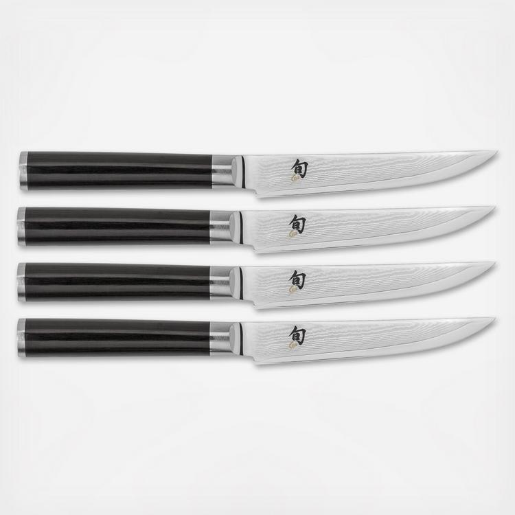 The Shun Classic Blonde 5-Piece Starter set brings the beauty and performance of Shun Classic to your kitchen in a new lighter, brighter look. It includes three of the most essential Shun knives, plus a Shun Combination Honing Steel and a beautiful 6-slot Slimline Block. You get the 8-in. Chef's Knife, the 3.5-in. Paring Knife, and the 6-in. Utility Knife. The attractive Slimline bamboo block takes up less space on your countertop and you will appreciate its easy-care performance, too.