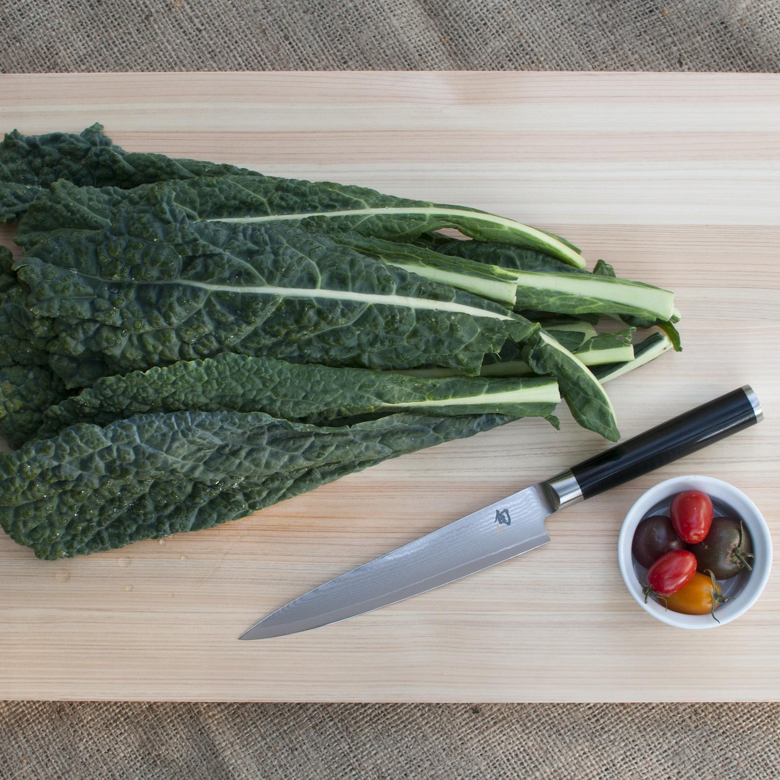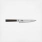 The Shun Classic Utility Knife is multipurpose and very, very handy. The utility knife has a narrow, straight blade that's perfect for a multitude of small tasks where more precise cuts are needed. Trimming green beans, cutting cauliflower florets, cutting sandwiches in half—all are tasks well suited to the Shun Classic Blonde 6-inch Utility Knife. Its very slightly curved belly enables it to do moderate rocking cuts. It's nimble enough to peel an onion in hand, then slice it up in short order. Utility knives are sometimes called sandwich knives because they work well on almost everything that goes into a sandwich—from thin-skinned vegetables such as tomatoes, to meats and cheeses.