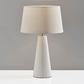 The Lana 2-piece table lamp set by Simplee Adesso brings bold texture and dimension to your space with its tapered, modern ceramic base featuring long vertical ridges. The 22.75" tall off- transitional style table lamps are complimented by oatmeal linen fabric drum shades. Each table lamp operates a 100W bulb (not included) that is easily turned on or off with a rotary socket switch. The set of two table lamps is ideal for framing your bed or other furniture or for balancing a console table design. Change it up by separating the pair to tie different room designs together.