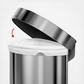 The simplehuman semi-round step can has a flat back for easy placement against the wall and out of the way. Its large capacity is ideal for busy areas around the home. The liner rim lifts up for easy access to the liner, then closes to grip and keep it neatly out of sight. The strong steel pedal is built to last, and lid shox technology ensures a smooth, silent close every time. Includes an all natural odorsorb pod that fits discreetly under the lid of your simplehuman can to eliminate trash odors for 45 days.