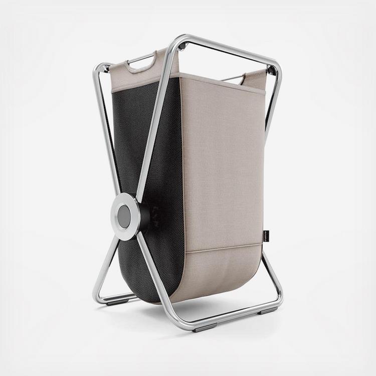 Our x-frame hamper is built with heavy-gauge steel bars so it won't buckle, even when packed with dirty clothes. The two-tone laundry bag is made from recycled polyester and is machine-washable with a stain and odor-resistant inner coating. Durable sturdy steel handles make the bag easy to remove from the frame and carry to the laundry room. A strong pivot point and wide base keep the laundry hamper stable.