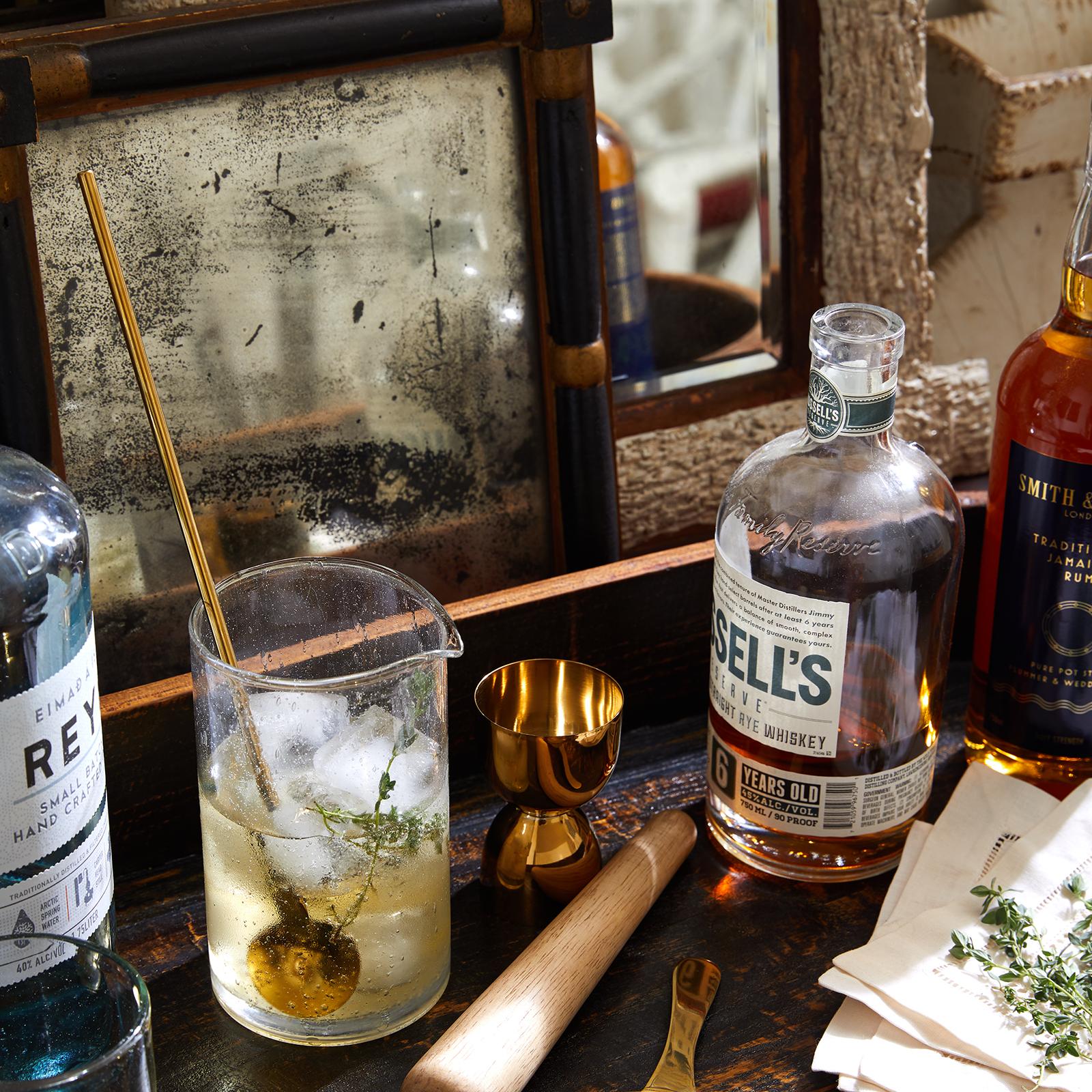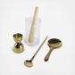 The golden rule of mixology is to know your tools, and the Elemental Cocktail Set provides everything you’ll need to make the perfect Sazerac, Vesper, or French 75. Each piece was carefully designed to provide both style and function, from the seeded glass mixing pitcher and beechwood muddler to the gleaming gold jigger, strainer, and bar spoon. Yes please!