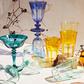 We were inspired to create this bespoke collection of colorfully festive drinking glasses on a trip to Italy's beloved Floating City. Designed in homage to the defining arches that adorn Venice’s most iconic bridge, our Rialto Glassware comes in four distinct shapes and fourteen signature colors; the Old Fashioned is ideal for a dram, while the Coupe serves up everything from champagne to sorbet, and both the Tumbler and the Tulip will do the trick for both water and wine. This unique glassware, finished by hand in Turkey, requires a multi-step process that is executed by artisans. No two are exactly alike, and subtle nuances in depth of color and cutwork are to be expected and embraced. Set of 2.