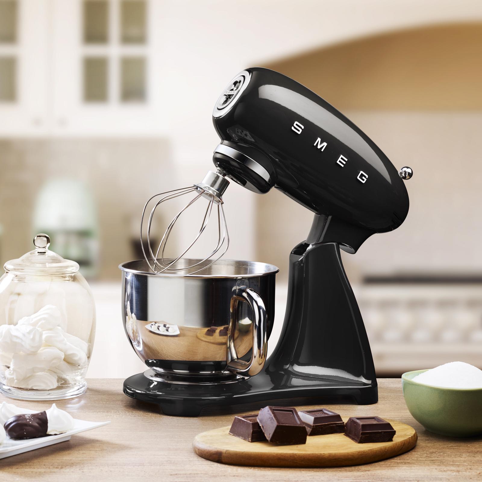 50's Retro Style Aesthetic Stand Mixer single color; Die‐cast aluminum body, Zinc‐alloy base with a 5qt stainless steel bowl & 6 accessories.