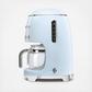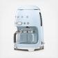 This 50's retro style drip coffee machine has a 10-cup capacity glass carafe.