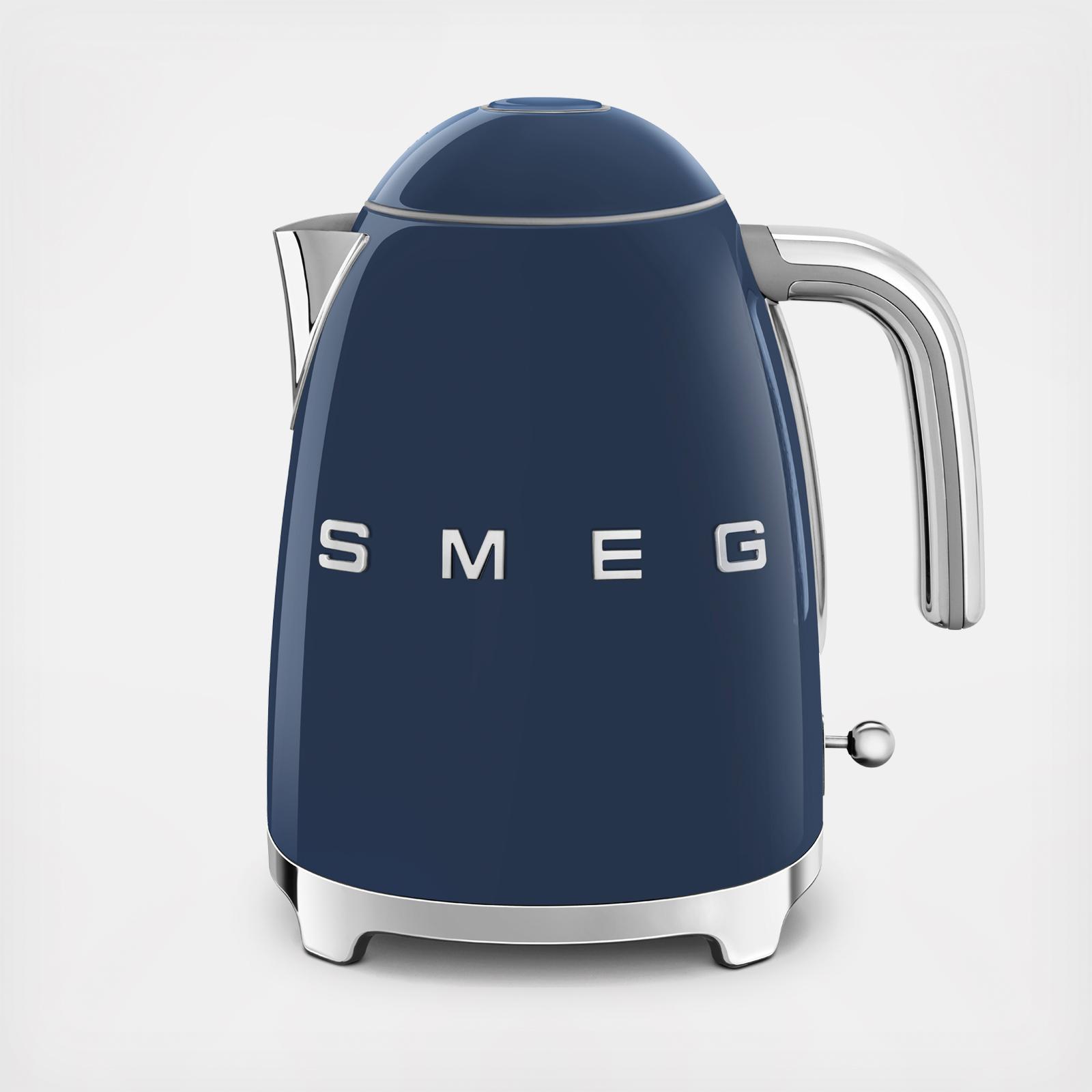For perfect appliance color-coordination, this retro kettle from Smeg comes in a variety of colors, and features a stainless steel powder-coated body, a stainless steel ball lever knob, a stainless steel spout, and a chrome handle.