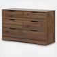 This dresser was designed with clean, straight lines and features six spacious drawers mounted on metal slides for smooth gliding. The drawers are fitted with modern cut outs instead of handles, making it an easy match to all decor types.