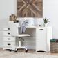 Whatever you’re into – be it handicrafts, sewing or jewellery making – every artist needs a dedicated work space. This sewing table from the Artwork collection means you can set up your own creative space, so you'll no longer need to use the kitchen table and put everything away when you’re done.You’ll love its cottage style with its grooved door for a wainscotting effect! The larger top surface has a finish that’s more scratchproof and water resistant Flexible: can be used as a sewing or a craft table Metal handles in a Black finish. Large work surface – handy for whatever you’re working onGrooved door for a wainscotting effect and cottage style On the right : the sliding storage module on a wheel features: A small work surface (top) that’s perfect for holding whatever you’re sewing, and 2 open storage spaces: the lower one is ideal for putting away your sewing machine 3 drawers for putting away all the things you use, and a sliding shelf with dowels for organizing and storing thread The dowels can be removed for greater versatility Metal drawer slides