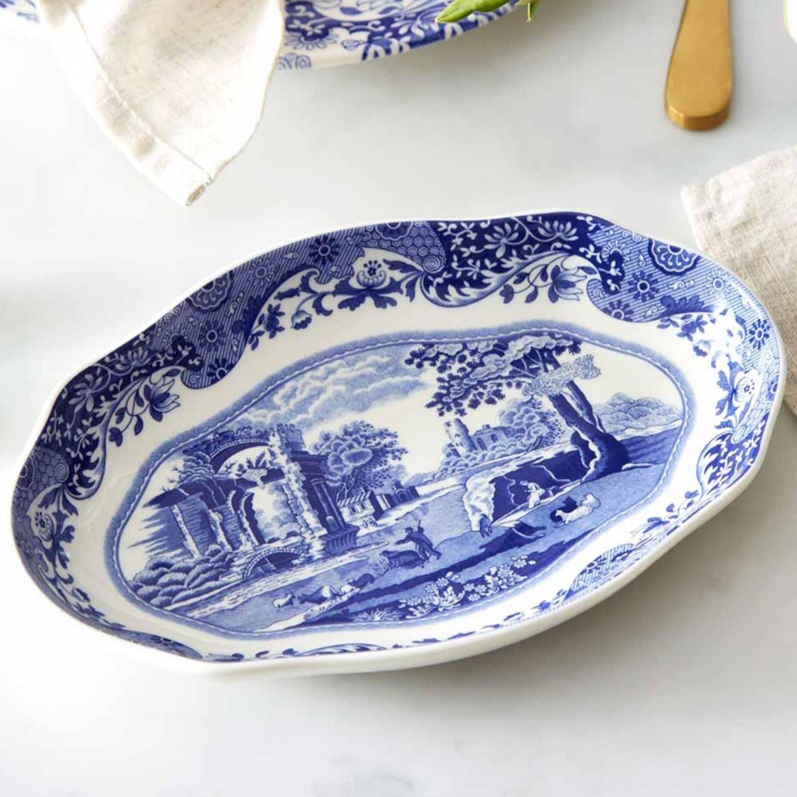 This beautiful Blue Italian Oval Pickle Dish from Spode is crafted from the finest porcelain and features the captivating 200-year-old pattern and soft, fluted edges. Perfect for hosting friends and family.