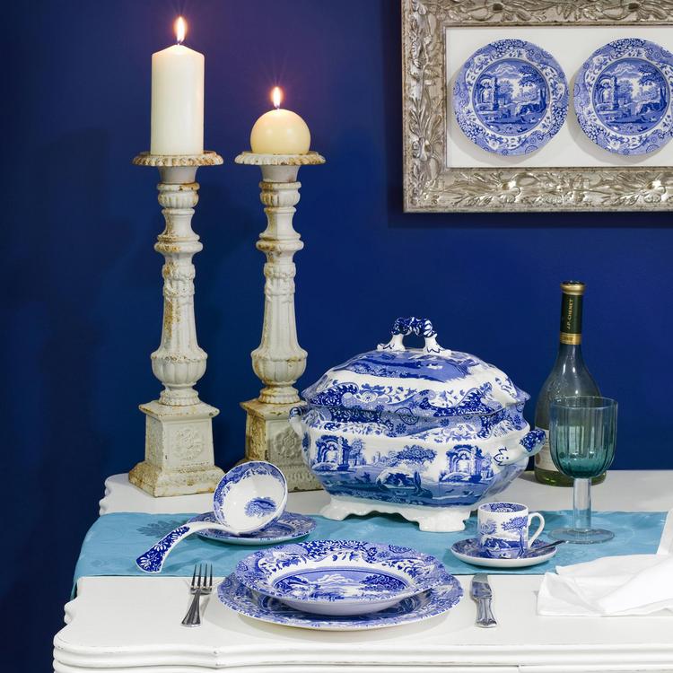 This Soup Tureen and Ladle Set is a beautiful way to serve your soup. Blue Italian, which has been in continuous production for nearly 200 years, epitomizes the traditional blue and white for which Spode is famous. Framed by an 18th century Chinese border, the central scene of Italian ruins was inspired by a 17th century drawing.