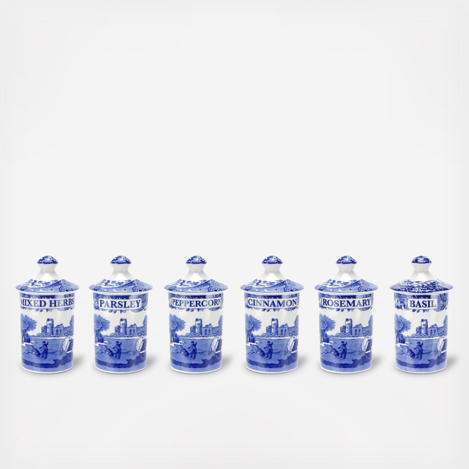 This beautiful Blue Italian set of 6 spice jars from Spode is a gorgeous addition to your kitchen top.
