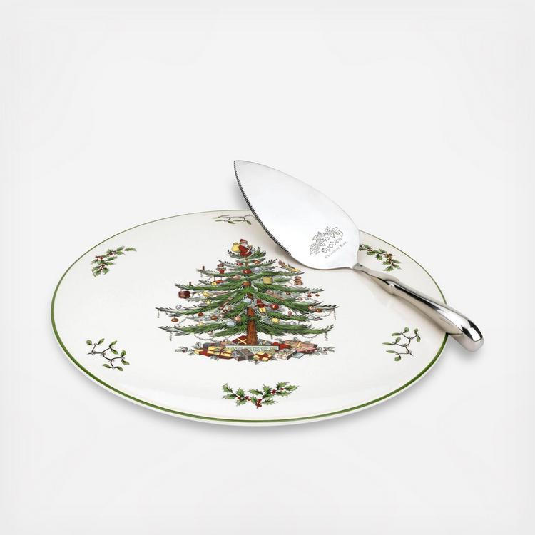 This cake plate and server set adds holiday charm to desserts, celebrations, and seasonal entertaining.