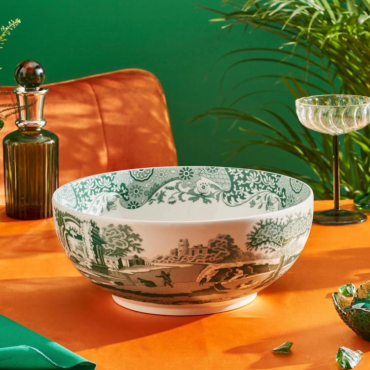 A true centerpiece for the table, this round bowl showcases the Green Italian design in a rich hue that elevates everything from pastas to salads with artistry and timeless presence.
