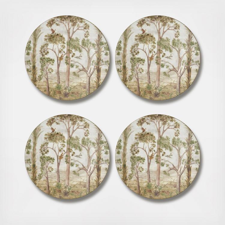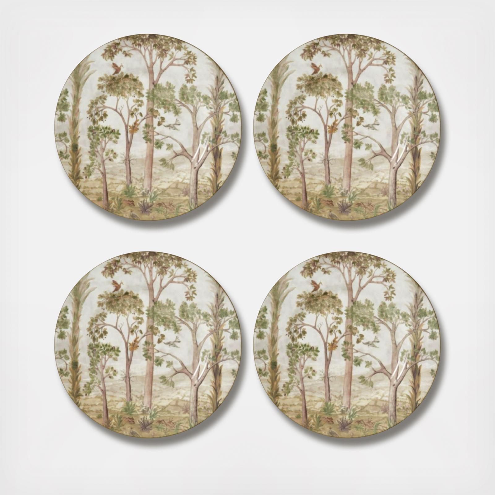 Create a beautiful neutral tablescape with this set of 4 salad plate from the Kit Kemp Tall Trees collection. Featuring an intricate design of treetops surrounded by birds and mythical creatures in soft shades.