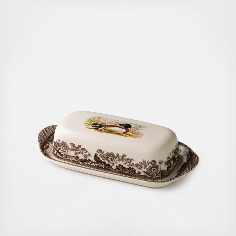 Introduced in the US in the 1990's, woodland's designs are rooted in the traditions of hunting for game and its elaborate presentation on the table. Central to the charm of the pattern are the striking studies of different animals framed by the British Flowers border which dates back to 1831. Their woodland is a tribute to american wildlife. These beautiful rendering's can be mixed and matched together to create a wonderfully distinctive dining experience. This covered butter dish features a Mallard.