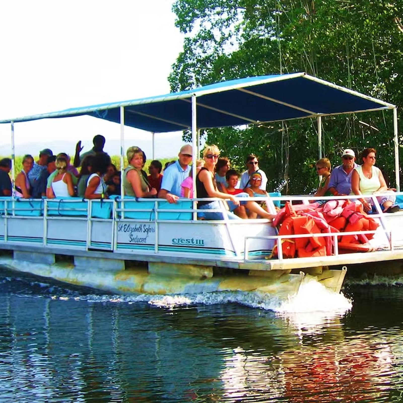 This journey takes you six miles up the river and then return, during which a running commentary is given by your captain/tour guide on both the ecology and the history of the area. Over 100 species of birds have been recorded in the Black River morass and many are seen during your trip. The highlight of the Black River is the thrill of sighting a crocodile and watching them being fed from your boat.