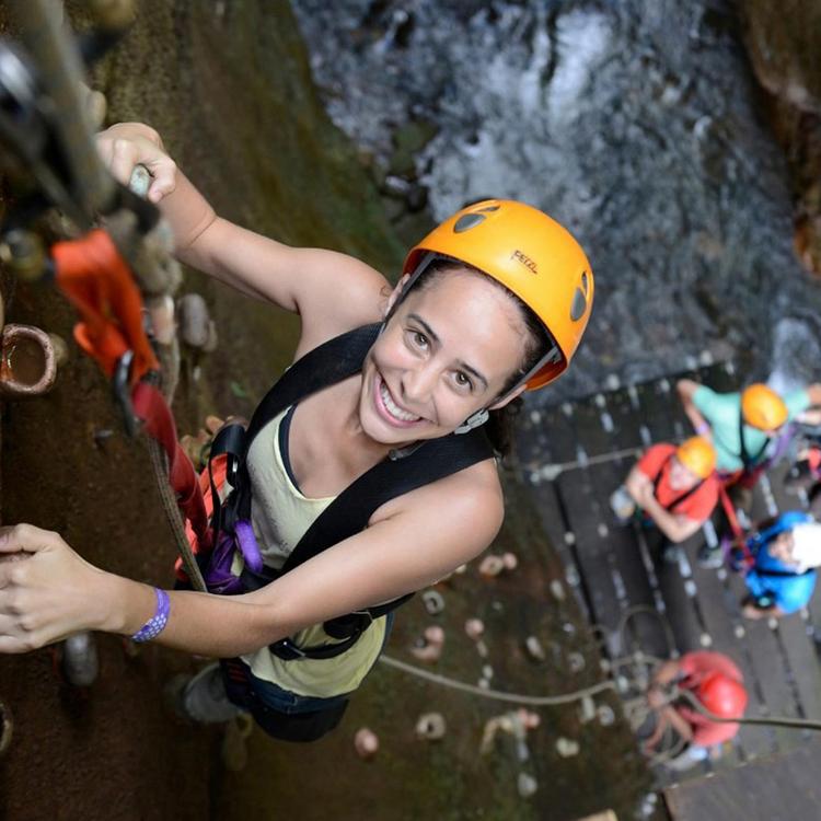 The excitement begins a short walk from Hacienda Guachipelins Adventure Center to the first zip line platform. Have exhilarating fun on seven zip line cables, one hanging bridge, two Tarzan swings, a controlled 65-foot rappel, natural rock climbing wall, and via ferrata traverses and climbs.