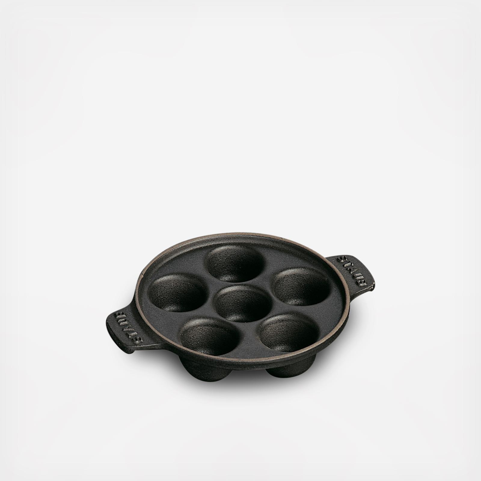 Introduce the underappreciated joy of snails to lucky guests at your next party or dinner. Staub's innovative cast iron escargot dish gently heats the snails without overcooking, and the attractive enameled pan is perfect for baking and serving in the same vessel. The 6 deep, rounded indentations accommodate both snail and the scrumptious melted butter that's oh so good for dipping.