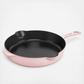 Proudly made in France, Staub has been the benchmark for premium cast iron cookware. Like all Staub fry pans, the Staub Traditional Skillet browns foods beautifully. Whether you’re searing chicken breasts, frying bacon, or caramelizing carrots, the Staub interior imparts texture, promoting exceptional browning and searing, without sticking. And because cast iron offers steady, even heat distribution, the temperature of the pan won't drop as you cook. Like a sauté pan and fry pan in one, our Traditional Skillet boasts all the features of a fry pan combined with higher, straighter sides, which means less splatter on the stovetop. Staub enameled cast iron cookware is the choice of the world's best chefs. With exceptional durability, it’s perfect for day-to-day use in both gourmet home kitchens and prestigious restaurants around the world. Each piece transitions beautifully from the kitchen to the table. Built to last a lifetime, these heirloom pieces can be passed from generation to generation. Textured interior ensures exceptional browning. Enameled cast iron is easy to clean and doesn’t require seasoning. Durable cast iron construction boasts incredible heat retention and distribution. Pouring spouts for easy fat removal. Raised sides help prevent splatter and spills.