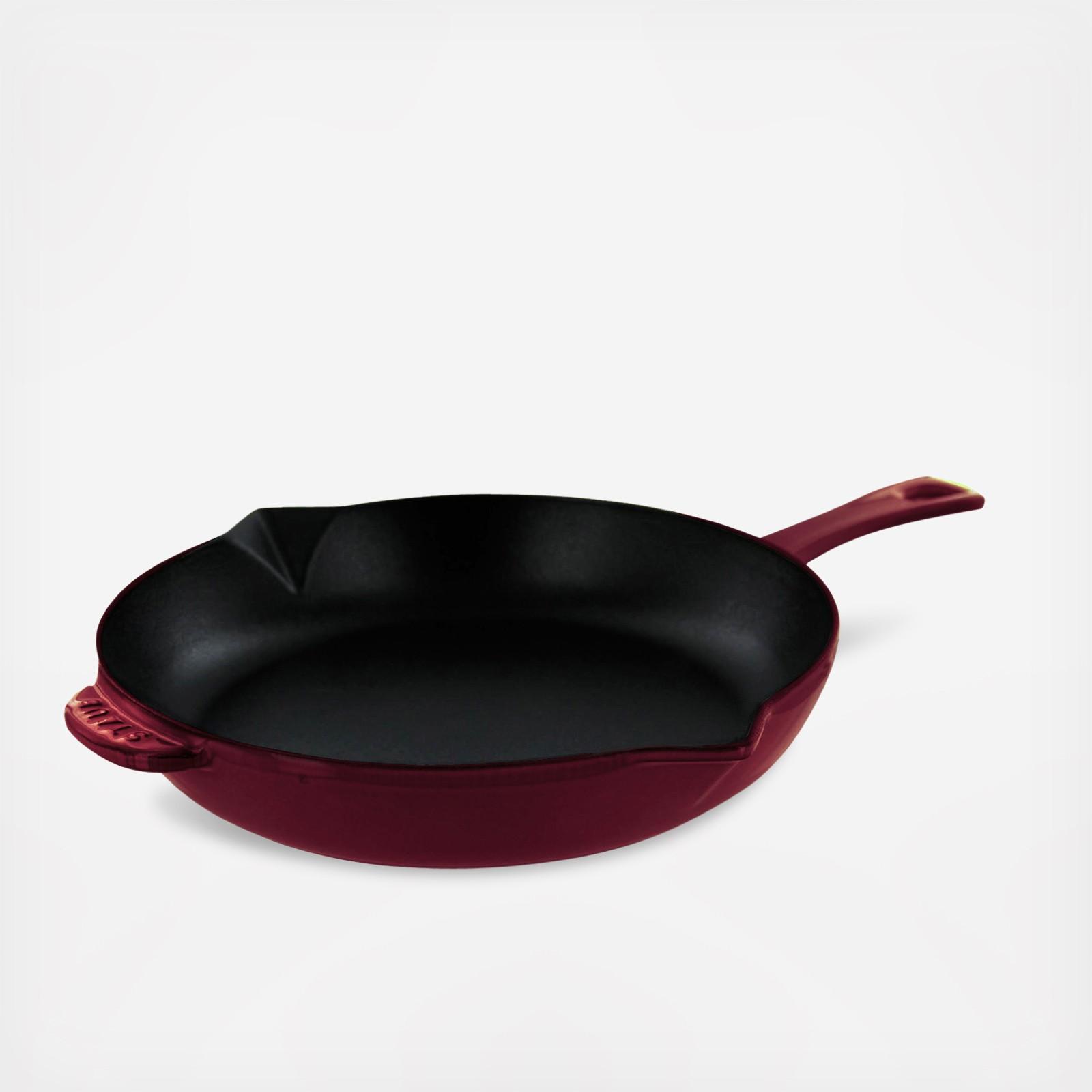 Proudly made in France, Staub has been the benchmark for premium cast iron cookware. Like all Staub fry pans, the Staub Traditional Skillet browns foods beautifully. Whether you’re searing chicken breasts, frying bacon, or caramelizing carrots, the Staub interior imparts texture, promoting exceptional browning and searing, without sticking. And because cast iron offers steady, even heat distribution, the temperature of the pan won't drop as you cook. Like a sauté pan and fry pan in one, our Traditional Skillet boasts all the features of a fry pan combined with higher, straighter sides, which means less splatter on the stovetop. Staub enameled cast iron cookware is the choice of the world's best chefs. With exceptional durability, it’s perfect for day-to-day use in both gourmet home kitchens and prestigious restaurants around the world. Each piece transitions beautifully from the kitchen to the table. Built to last a lifetime, these heirloom pieces can be passed from generation to generation. Textured interior ensures exceptional browning. Enameled cast iron is easy to clean and doesn’t require seasoning. Durable cast iron construction boasts incredible heat retention and distribution. Pouring spouts for easy fat removal. Raised sides help prevent splatter and spills.