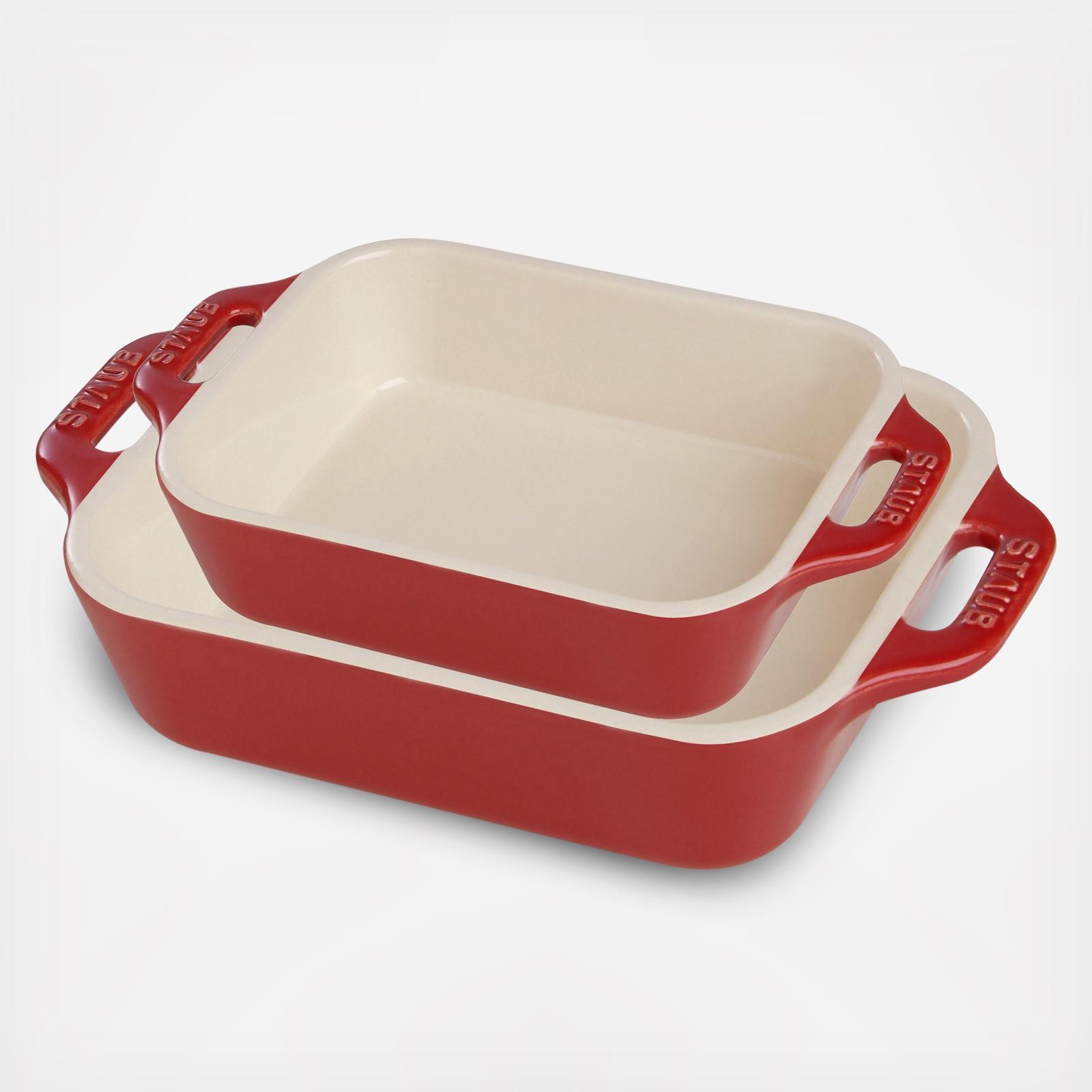 Capturing the joy of sunny springtime days, Citron is cheerful and charming, transforming every meal into a warm, carefree moment. Bold and bright, it stands alone on any tabletop or perfectly pairs with other shades of Staub. Staub rectangular stoneware bakers gently retain heat and won't absorb moisture, producing a delicious result for all your favorite dishes. The stackable 2-pack baking dishes are perfect for lasagna, casseroles, desserts, as well as roasted meats and vegetables. This baking dish set transitions beautifully from oven to table.
