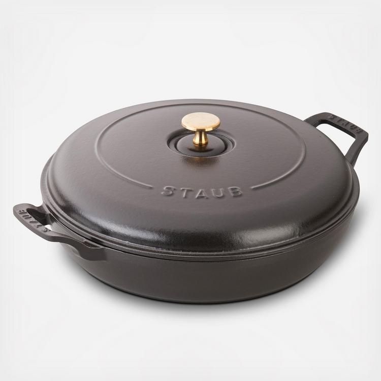 The Staub Cast Iron 3.5 qt. Braiser is the perfect pot for one-dish suppers, braised lamb shanks, and breakfast hash. It will quickly become your go-to cooking vessel, perfect for sauteing, frying, braising, and roasting. Thanks to its vivid Majolica enameling - a three-step technique that imbues the color with brilliance and depth - this iconic piece beautifully transitions from oven to table.
